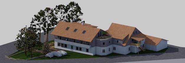 Nachfolgend sehen Sie eine Projektentwicklung in der Rhön. Es wird ein bestehender Gasthof mit Zimmervermietung neu belebt, modernisiert und durch Umnutzung einiger Gebäudeteile für ein touristisches Miteinander in der Rhön zusammengefügt. Es entsteht ein Gasthof mit Ferienwohnungen, behindertengerechten Ferienwohnungen sowie ein großzügiges Bettenlager.